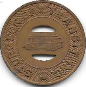 The final pieces of Door County transportation numismatics are these two tokens for the Sturgeon Bay Transit Company. The brass token on top is for a child’s fare and the cupro-nickel token on bottom is an adult fare. The Transit Company was founded in 1943 to serve the expanded labor force that came to Sturgeon Bay to work in the shipyards for the war effort. It ceased operation in 1953.