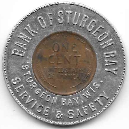 There are a handful of numismatic mementos of the Bank of Sturgeon Bay that span most of its history.