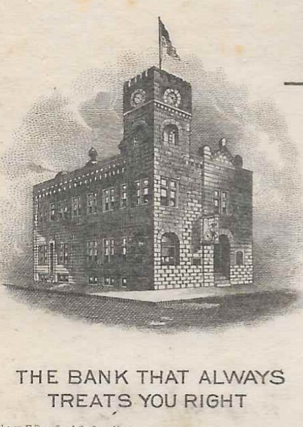 The earliest piece I have is this check written in 1900 on the account of Bo L. Andersen. It was printed by J.J. Pinney, a printer in Sturgeon Bay. It features a two cent documentary revenue stamp. A two cent tax was imposed on checks in 1898 to help pay for the Spanish-American War.