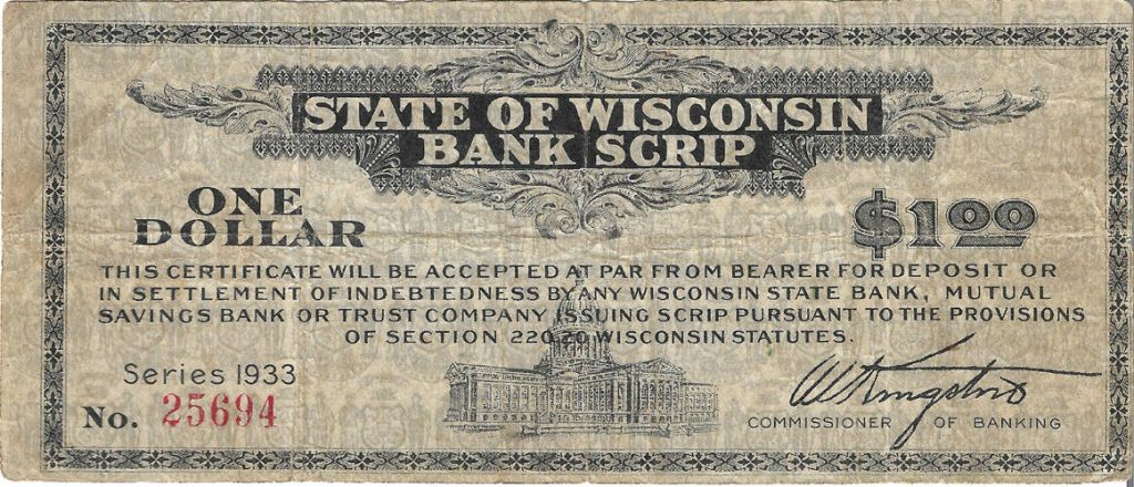 Many communities took to issuing scrip as a cash substitute to keep business moving. The scrip was local currency that was intended to circulate as long as necessary and would be redeemed at a later date.