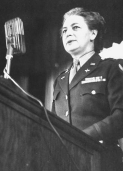 Colonel May was born in 1895 in Albany, NY. She died in 1997 at the age of 102. Before the war she was a social worker and an executive with the Camp Fire Girls. She joined the Women’s Army Auxiliary Corps in July 1942. Upon completion of officer candidate school she was assigned to the Army Air Corps where she served as director of WACs in the Air Transport Command. After the war she was appointed Director of Women in the newly created United States Air Force. She was promoted to full colonel and was the first woman in the Air Force to hold that rank. She left active service in 1951.