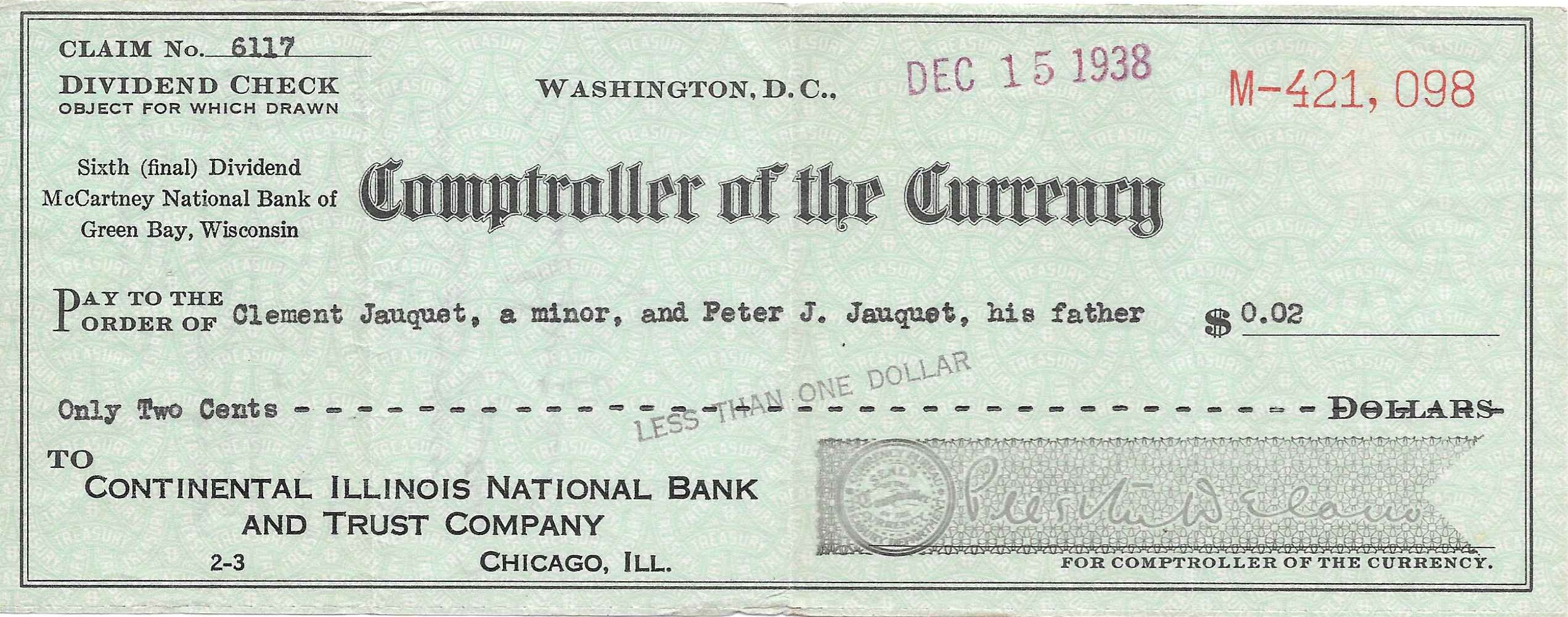 Things went better for the bank’s depositors. The receiver sold off the bank’s assets and called in a 100% assessment against the stockholders. It took several years but the depositors received most of their money back in a series of liquidating distributions. The Kellogg-Citizens National Bank took over the redemption of the still circulating National Bank Notes issued by the bank.