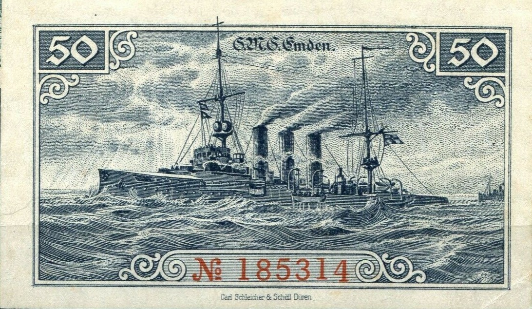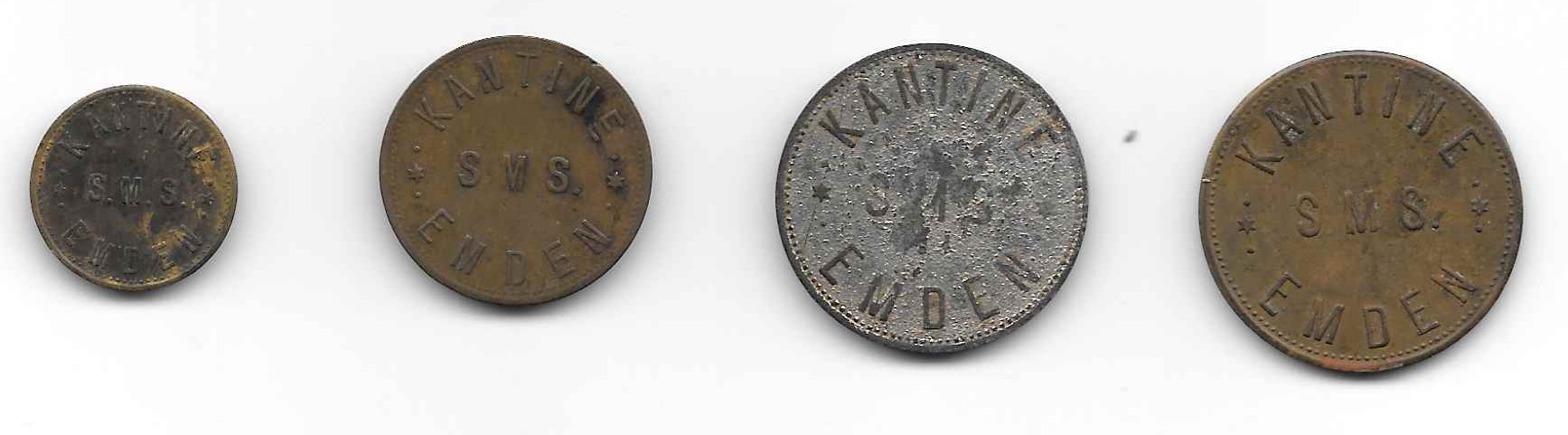 German naval vessels issued tokens for use in their canteens. The above set of tokens were from the SMS Emden. Most of the SMS Emden tokens in the collector’s market were looted from the ship by the crew of the HMAS Sydney.
